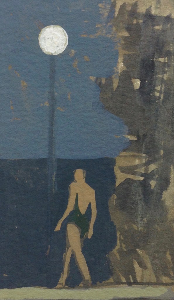 Night – gouache on paperFring – oil on boardField boundary – acrylic on boardSelf portrait – acrylic on MDFCley next the Sea – acrylic on canvas on boardAdam I – acrylic on canvas on boardAdam walking – acrylic on MDFMull III – acrylic on canvas on boardGate of Honour – acrylic on MDFGate of Honour (detail) – acrylic on MDFPill box – acrylic on MDF