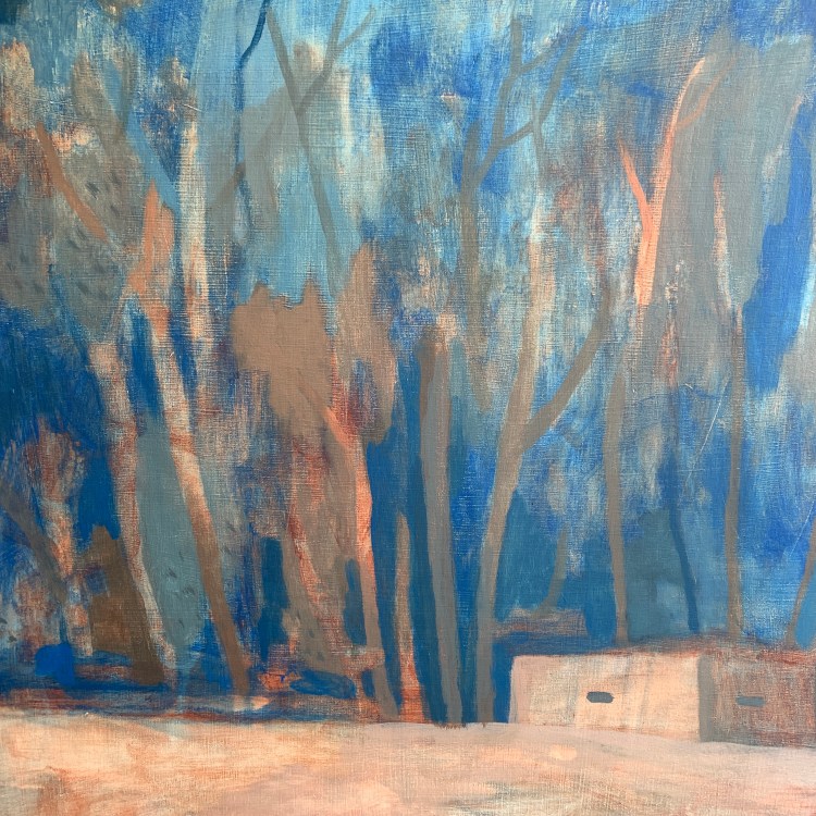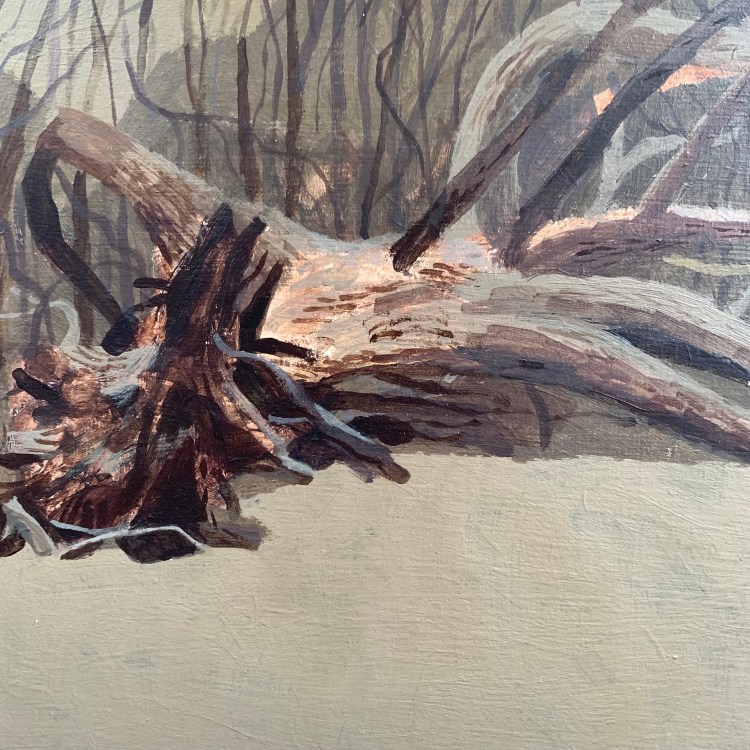 Venetian evening – acrylic on MDFMan On – acrylic on canvasFloodscape – acrylic on canvasObstruction – acrylic on canvasAdam II – acrylic on canvas on boardSnow – acrylic on MDFFallen oak I – acrylic on MDFOlive tree – acrylic on MDFOlive tree (detail) – acrylic on MDF